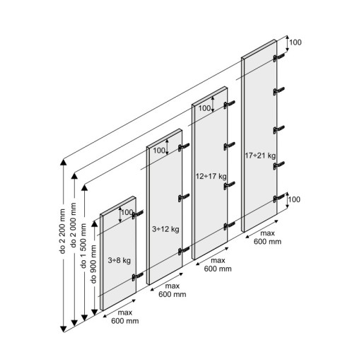 ⬇️ Zalecana ilość zawiasów uzależniona jest od wysokości płyty i wynosi: