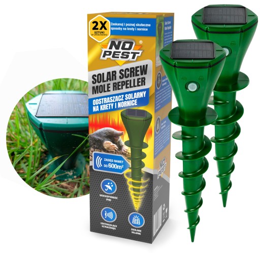 Odstraszacz solarny na krety i nornice do 600 m² - Solar Screw Mole Repeller NO PEST (2 szt)
