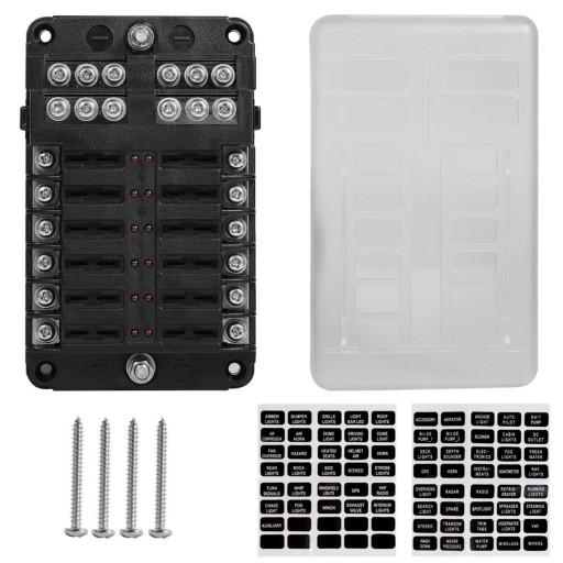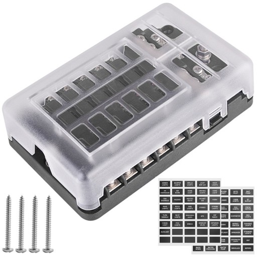 ✅Opakowanie zawiera --- 12-drożną skrzynkę bezpieczników, 2x etykiety, 4x śruby .(Bezpieczniki nie są elementem zestawu.)