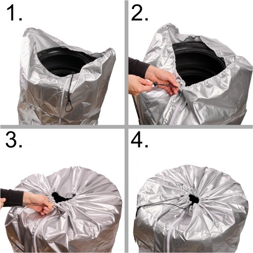 - Wymiary pokrowca (wysokość x średnica): 108cm x 72cm