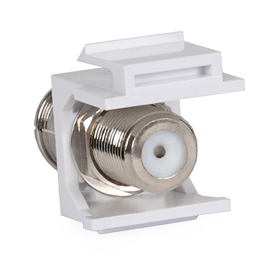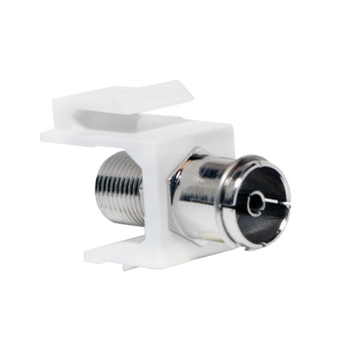 Łącznik Keystone F / IEC. Pozwala łączyć ze sobą dwa odcinki przewodu koncentrycznego, zakończonego złączami F oraz IEC.