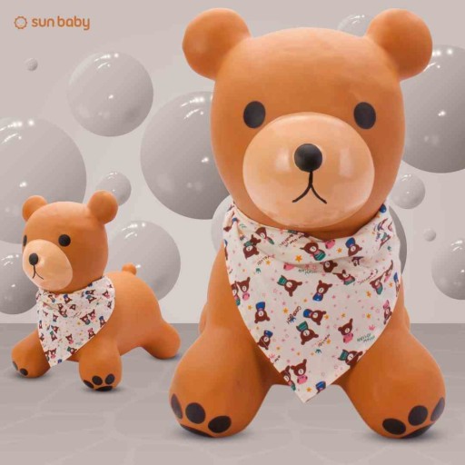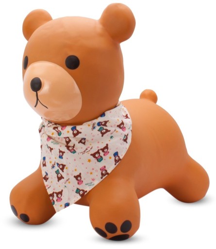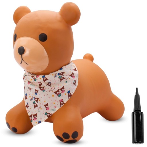 Skoczek gumowy dla dzieci TEDDY 52 cm brązowy z bandaną do skakania z pompk