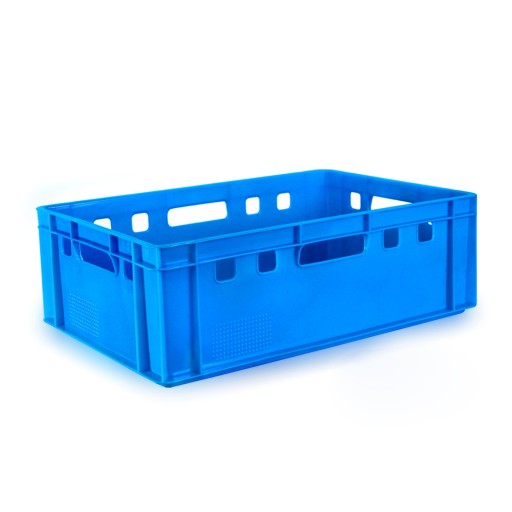 Skrzynki na mięso to higieniczne przechowywanie i transportowanie mięsa. Zostały one opracowane do zastosowania w przemyśle m.in. mięsnym, by spełniały wszelkie wymogi. Dzięki konstrukcji skrzynki Euro E2, świetnie odprowadza ona wodę z krawędzi na zewnątrz co zapewnia optymalne warunki do magazynowania oraz transportu mięsa. Pojemniki są wykonane z oryginalnego tworzywa oraz posiadają certyfikację do kontaktu z żywnością. Skrzynka plastikowa jest przeznaczona do transportu oraz przechowywania mięsa, wędlin, drobiu czy podrobów.