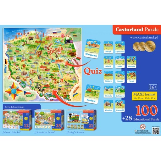 Puzzle "Puzzle 100 elementów. Mapa Polski + Quiz 28 elementów" - opis