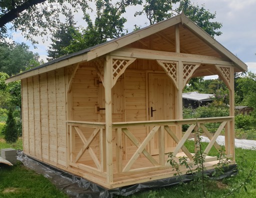 Domek drewniany z tarasem o podstawie 4x3 m. Powierzchnia do zamieszkania 2x3 m oraz taras o tych samych wymiarach. Znakomicie nadaje się do zastosowań na działkach rekreacyjnych jak i w ogrodach przydomowych. Ściany wykonane w technologii węgłowej pióro-wpust o grubości 19 mm. Grubość legarów pod podłogą 5x5 cm. Domek wykonany jest z drewna sosnowego suszonego komorowo do wilgotności 15%. Suszenie zapewnia ochronę przed sinizną i grzybami. Te kryteria mają istotny wpływ i zapewniają długoterminową trwałość naszego produktu. Podłoga i dach w zestawie- domek w pełni odeskowany. Konstrukcja domku umożliwia ocieplenie od wewnątrz.