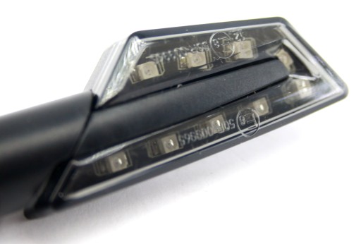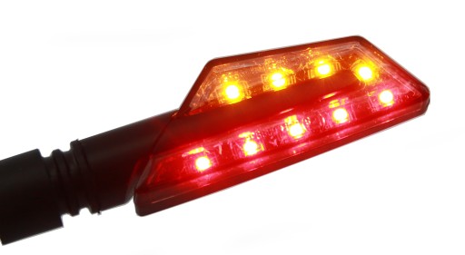 Uniwersalne kierunkowskazy LED czarne, biały klosz ze światłem pozycyjnym i STOP.