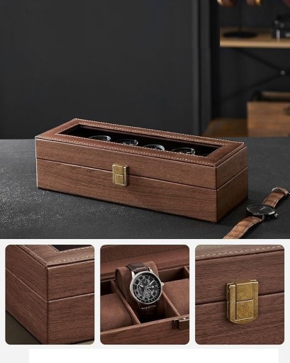 To eleganckie pudełko na zegarki to idealne rozwiązanie do przechowywania i eksponowania Twojej kolekcji. Dzięki 6 przegródkom i transparentnej pokrywce organizer doskonale nadaje się zarówno do codziennego użytku, jak i na prezent.