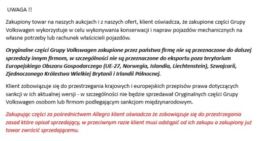 - Towar jest nowy i nie jest zamiennikiem Oryginalnej części.