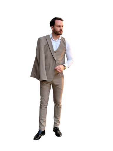 Мужской приталенный костюм темно-бежевого цвета, размер 48/30