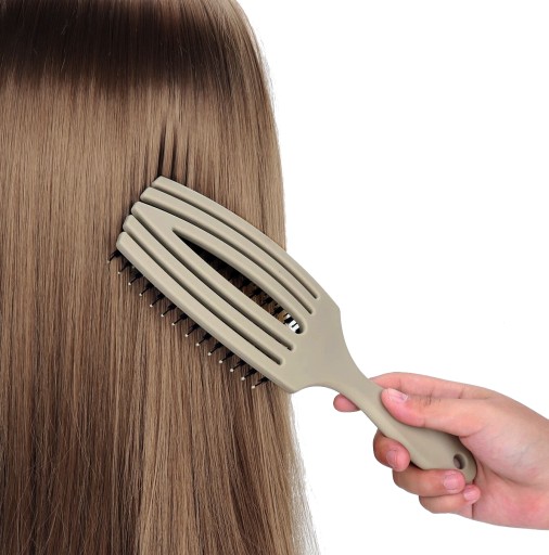 Powierzchnia rozczesująca szczotki jest odpowiednio szeroka oraz wygięta, aby właściwie dopasowywać się do anatomicznych kształtów głowy. Szczotka posiada gęsto rozstawione nylonowe igiełki rozczesujące, zakończone kuleczkami, dzięki czemu są łagodne dla skóry głowy i dodatkowo ją masują.