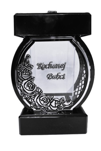 znicz lampion KOŁO AŻUR CZARNY srebrne RÓŻE dla DZIADKÓW Kochanym Dziadkom