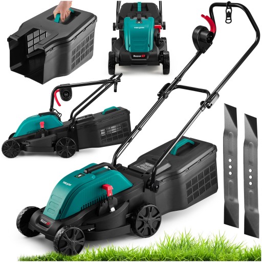 Kosiarka elektryczna | Bezawaryjny silnik indukcyjny | Szerokość koszenia aż 33cm | 2000W ESP | Pojemny kosz 30L | 5-stopniowa regulacja wysokości koszenia | Dwa noże w zestawie | Energooszczędna | Łatwy montaż