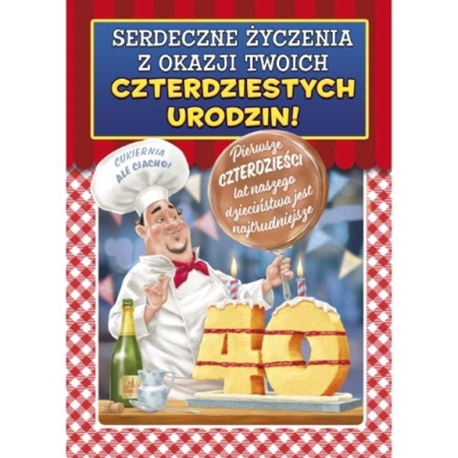 Elegancka torebka prezentowa z dopasowanym śmiesznym napisem z okazji 40 urodzin. Torebka wykonana z grubego, lakierowanego papieru.