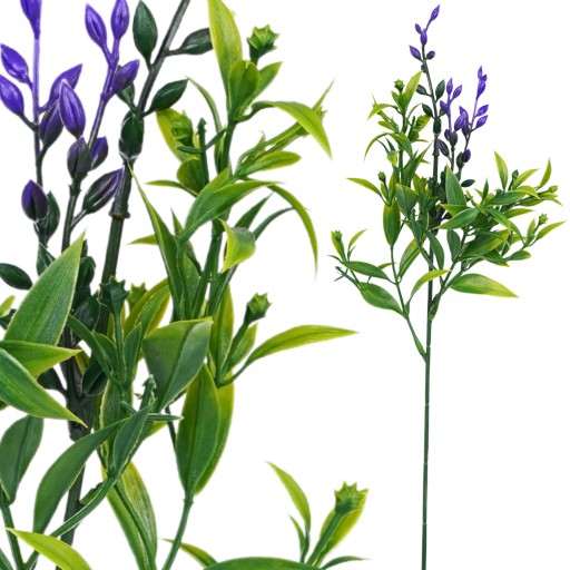 SZTUCZNE KWIATY RUSKUS GAŁĄZKA LIŚCI ZIELONYCH NA STROIK FIOLETOWA 56cm