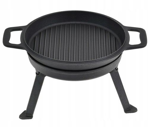 Patelnie grillową jak i garnek można również używać w domu, naczynia przystosowane są do wszystkich kuchni.
