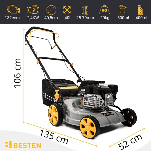 Dzięki mocy 2,4 kW, silnik zapewnia wyjątkową wydajność, gwarantując płynne i efektywne koszenie, nawet na dużych powierzchniach.