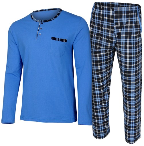 Хлопковая мужская турецкая пижама с длинным рукавом два кармана качественная решетка