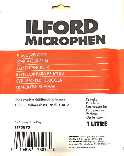 Nowa wersja opakowania , produkcja dla Ilford w USA,