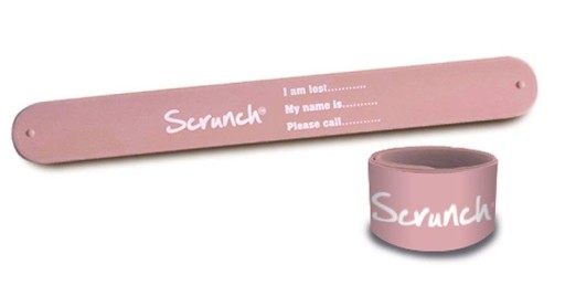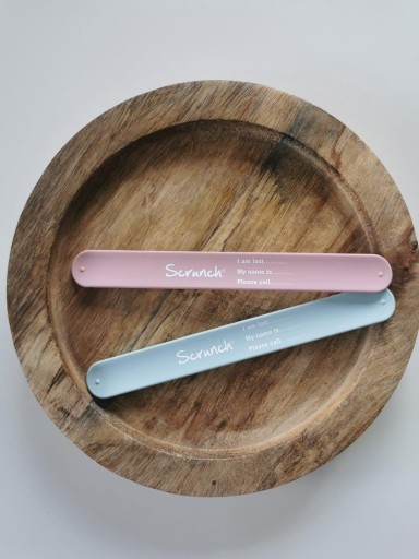 Zadbaj o bezpieczeństwo dziecka z opaską informacyjną Scrunch. Szczególnie przydatna na wakacjach, w centrum handlowym, na lotnisku i w innych zatłoczonych miejscach. Na zewnętrznej stronie opaski znajduje się miejsce na wpisanie imienia dziecka oraz numeru telefonu do rodzica. Jeżeli maluch się zgubi lub zabłądzi, każda napotkana osoba będzie mogła udzielić mu pomocy dzwoniąc do opiekuna. Opaska została wykonana z silikonu ze sprężynującą blaszką w środku, dzięki czemu pasuje na rękę dzieci w różnym wieku.
