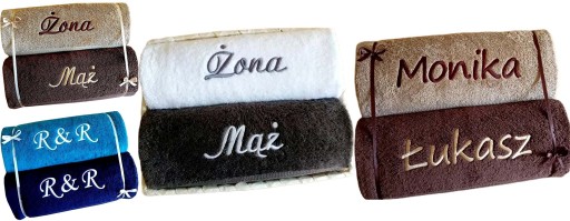 Ta aukcja i cena dotyczą kompletu 2 szt. dużych ręczników kąpielowych 70x140 cm w KOSZU, z Twoim indywidualnym haftem w postaci: