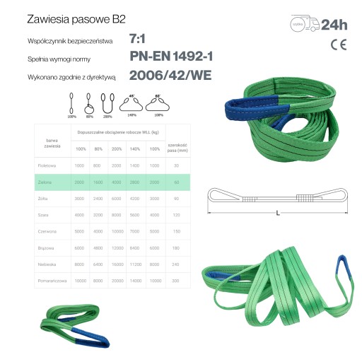 - Bezpieczeństwo: Zgodność z normą PN-EN 1492-1 oraz wysoki współczynnik bezpieczeństwa zapewniają niezawodność i ochronę podczas użytkowania.