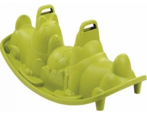 Uroczy bujak z wygodnym siedziskiem dla maksymalnie 3 dzieci, z uchwytami oraz stabilną konstrukcją zapobiegającą wywróceniu.