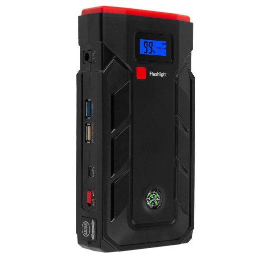 - Szybko i bezpiecznie uruchom rozładowany akumulator samochodowy w ciągu kilku sekund dzięki naszemu kompaktowemu, przenośnemu rozrusznikowi litowemu 1000 A do silników benzynowych o pojemności do 6 litrów.