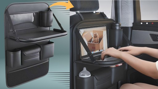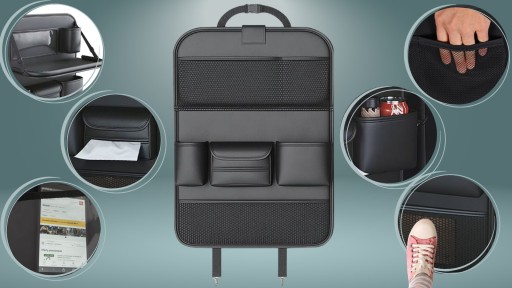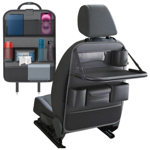 - ✅Porządek i organizacja - Duża liczba kieszonek pomieści wszystkie niezbędne akcesoria w Twoim samochodzie. Organizer pozwoli uniknąć bałaganu i problemów z odnajdywaniem potrzebnych rzeczy. Organizer samochodowy na przedni fotel posiada aż 9 kieszeni oraz rozkładany stolik.