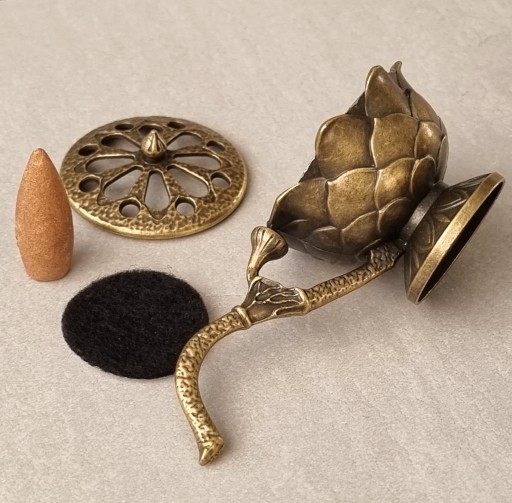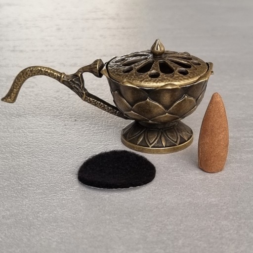 Tradycyjna mosiężna kadzielniczka w kształcie lampy, domowa podstawka, stojak do kadzideł tradycyjnych oraz stożkowych