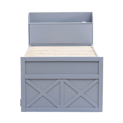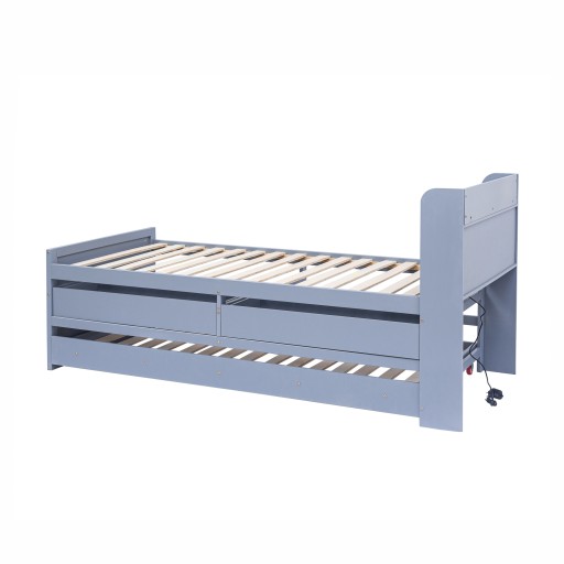 Łóżko pojedyncze łóżko z litego drewna sosnowego 90x190 wielofunkcyjne z wysuwaną szufladą rama z listew, stolik nocny z półkami z gniazdem USB łóżko młodzieżowe łóżko gościnne szare