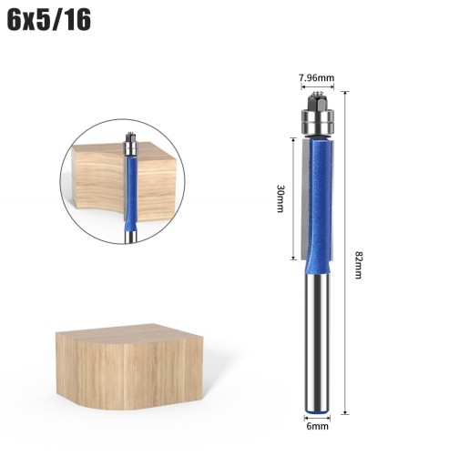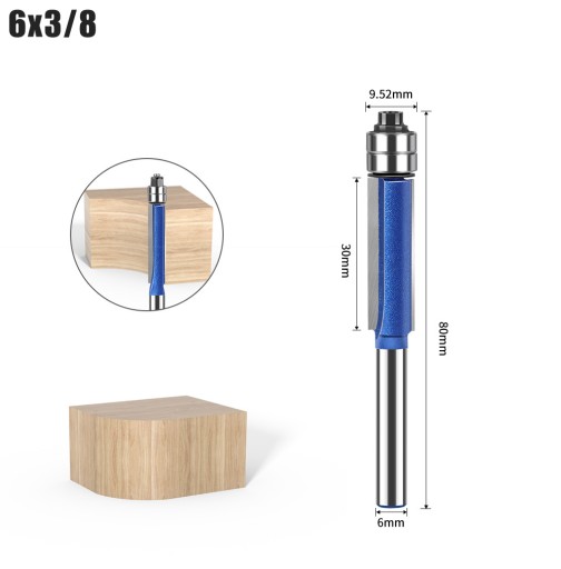 Cechy: Frezy do routera z prostym fletem, z obosialnym frezem i wymiennym łożyskiem kulkowym, płynna obsługa, doskoła koncentryczność, do wykończenia krawędzi.