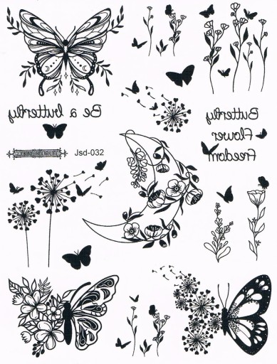 TATUAŻ ZMYWALNY TYMCZASOWY CZARNY 15.5 x 12 CM MOTYLE KWIATY KSIĘŻYC