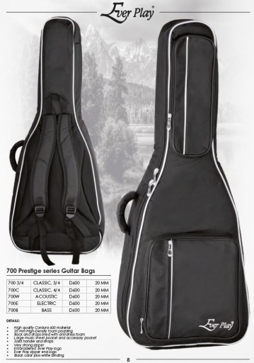 W ofercie pokrowców marki Ever Play znajdują się różne modele dopasowane do zapotrzebowania i typu gitary (C - klasyczna, W - akustyczna, E - elektryczna, B - basowa):