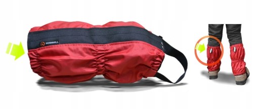 Dolna i środkowa część ochraniacza posiada wewnętrzne taśmy elastyczne, całość dzięki temu dopasowuje się do grubości buta i nogi.
