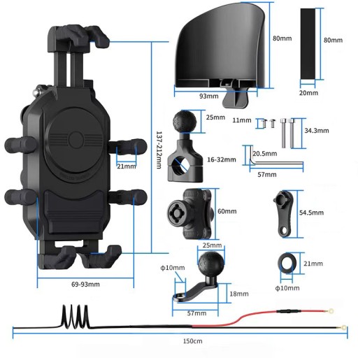 MC39 MOTOCYKLOWY UCHWYT TELEFON ANTYWIBRACYJNY ŁADOWANIE USB-C