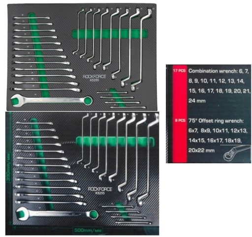 Zestaw kluczy płasko-oczkowych 25 sztuk.