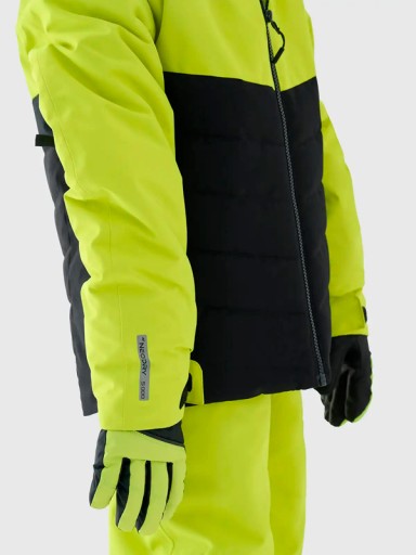 Chłopięcy komplet narciarski z kapturem technologicznie dostosowany do sportowych aktywności oraz do codziennego użytkowania. Posiada krój regular, który wygodnie dopasowuje się do sylwetki oraz standardową długość sięgającą do linii bioder.