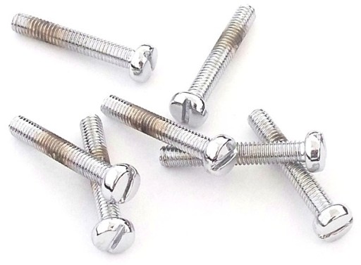 CHROMOWANE WKRĘTY NA PŁASKI ŚRUBOKRĘT, ROZMIAR 6X40. WYSOKA JAKOŚĆ POWŁOKI GALWANICZNEJ (PODKŁAD MIEDZI I NIKLU).