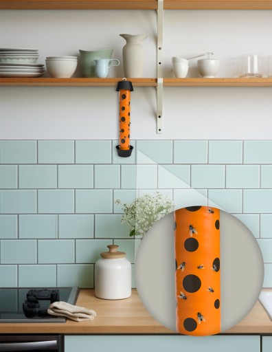 3. Zawiesić pułapkę za pomocą dołączonego haczyka. Postawić w pionie lub poziomie w miejscu gromadzenia się owadów, z dala od miejsc nasłonecznionych, wilgotnych oraz przeciągów.