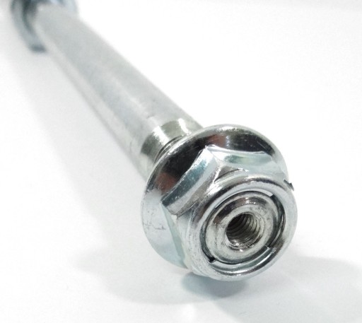 Oryginalna ośka tylnego koła stosowana w motocyklach marki MRF typu Supermoto.
