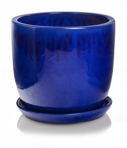 Łącząca w sobie prostotę i elegancję - Mrozoodporna szkliwiona ceramiczna doniczka w kolorze niebieskim z podstawką w zestawie