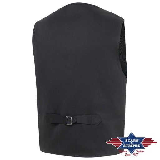 Stylowa kamizelka do garnituru. Trzy kieszenie zewnętrzne i jedna wewnętrzna. Materiał: 65% POL, 35% sztuczny jedwab Kolor: czarny