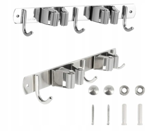 Dzięki połączeniu klamer i haczyków można zawiesić wiele różnych przedmiotów. Pomyśl o mopie, trzonku miotły, ale również o innych trzonkach i akcesoriach do czyszczenia. Antypoślizgowe gumowe uchwyty zapewniają, że trzonki przedmiotów pozostają na swoim miejscu i nie przesuwają się.
