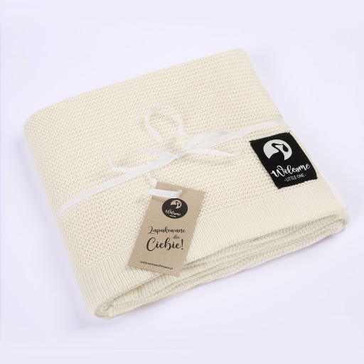 KOCYK KOC BAMBUSOWY BAWEŁNIANY DZIECIĘCY DLA DZIECKA ECRU 80x100