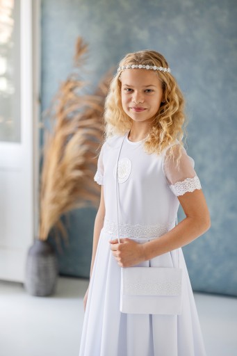 Nieskazitelnie biała alba o sukienkowym kroju to wyjątkowy strój dla dziewczynki przystępującej do Pierwszej Komunii Świętej.