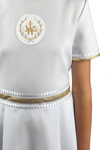 Nieskazitelnie biała alba o sukienkowym kroju to wyjątkowy strój dla dziewczynki przystępującej do Pierwszej Komunii Świętej.