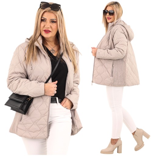 KURTKA PRZEJŚCIOWA DAMSKA Z KAPTUREM LEKKA PIKOWANA OVERSIZE DUŻE ROZMIARY