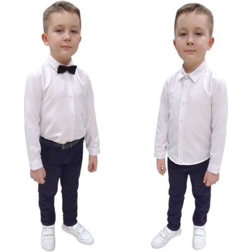ELEGANCKA BIAŁA KOSZULA Z KOŁNIERZYKIEM DLA CHŁOPCA + MUSZKA GRATIS