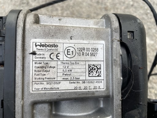 WEBASTO OGRZEWANIE POSTOJOWE MOKRE 9021032F THERMO TOP EVO 12V 5.0 KW 3B1626214504 13-15R MITSUBISHI OUTLANDER III 3
