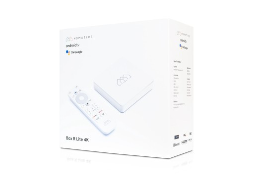 Homatics Box R Lite 4K to jedno z najpotężniejszych urządzeń multimedialnych 4K na rynku, które zamienia zwykły telewizor w potężny smart TV. Systemem operacyjnym jest oficjalny Android TV 11. Szybkie reakcje zapewnia wydajny procesor Amlogic S905Y4 zapewniający większą prędkość i lepsze wrażenia użytkownika, wspierany przez maksymalnie 2 GB pamięci DDR RAM i 32 GB eMMC Flash. Obejmuje asystenta głosowego Google, preinstalowany YouTube, Netflix, sklep Google Play, Prime Video, wbudowany chromecast i obsługuje najczęściej używane aplikacje, takie jak KODI, HBO GO, SledovanieTV, Antik TV, Magio GO, Skylink i inne. Pilot służy również jako mikrofon dla asystenta głosowego Google. Homatics Box R Lite zachwyci Cię doskonałym wyposażeniem i łącznością, taką jak złącze Ethernet, USB Typ C, 2x USB 2.0, optyczne cyfrowe wyjście audio S/PDIF, czytnik kart MicroSD